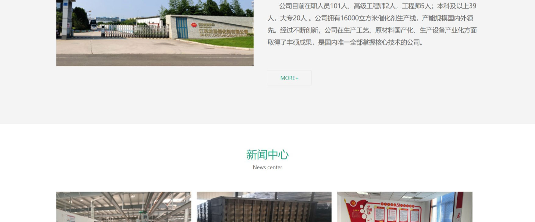 公司目前在职人员101人,高级工程师2人,工程师5人;本科及以上39人,大专20人 。公司拥有16000立方米催化剂生产线,产能规模国内外领先。经过不断创新,公司在生产工艺、原材料国产化、生产设备产业化方面取得了丰硕成果,是国内唯一全部掌握核心技术的公司。